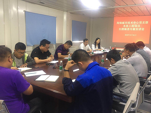 5月31日,海綿城市技術(shù)中心黨支部走進(jìn)新渭沙濕地工程項(xiàng)目部開展水務(wù)工程項(xiàng)目全國(guó)兩會(huì)精神宣貫暨掃黑除惡專項(xiàng)斗爭(zhēng)宣講會(huì),各項(xiàng)目施工單位、監(jiān)理單位項(xiàng)目經(jīng)理及工人代表參加會(huì)議。
