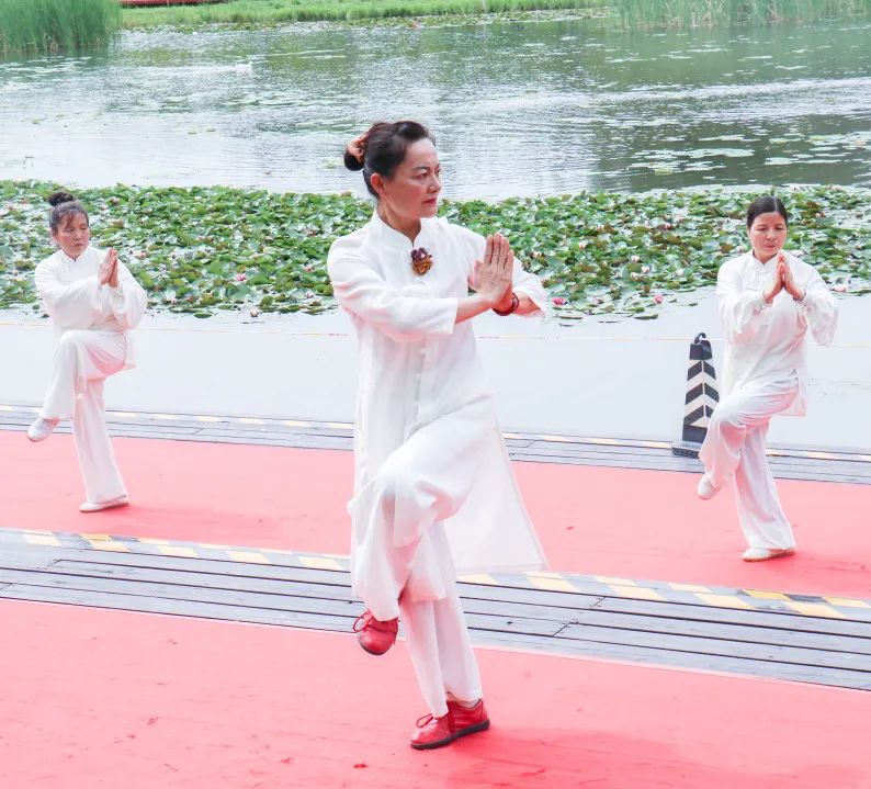 百余位武術、太極表演者身著古樸服裝,在柔和的背景音樂中舒緩起手,舒展身體,于動靜之中詮釋太極魅力,讓在場的觀眾感受到了中華民族傳統文化瑰寶太極的魅力。