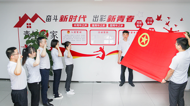 5月10日上午,為迎接黨的二十大勝利召開,慶建團100周年。灃西集團物業公司團支部組織青年團員開展建團百年主題團日活動。會上黨支部青年委員張小超宣讀了《共青團陜西灃西物業管理有限公司團支部關于“青”字號品牌創建工作方案》,黨支部書記靳文華為運營管理部、保障服務部授“青年突擊隊”授旗并領學《中共中央關于黨的百年奮斗重大成就和歷史經驗的決議》序言,最后,全體與會團員青年集體觀看《慶祝中國共產主義青年團成立100周年大年》直播。