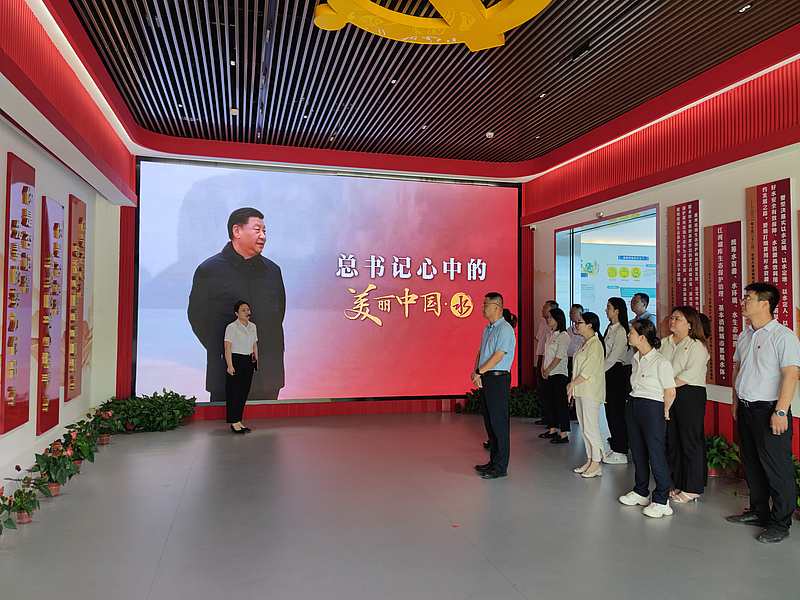 隨后,黨員們來到了鄠邑水生態保護警示教育中心,大家依次參觀“水出秦嶺”“水潤鄠邑”“水映史瀾”“水鑒清風”“水淀清濁”“水碧城興”六大板塊,深入了解鄠邑山與水的關系以及鄠邑水文明史話。同時,通過鄠邑區內近年來查處的破壞水生態環境典型案例和負面清單,以案示警,教育引導廣大黨員干部以案例為鏡鑒,提高紀律規矩意識。