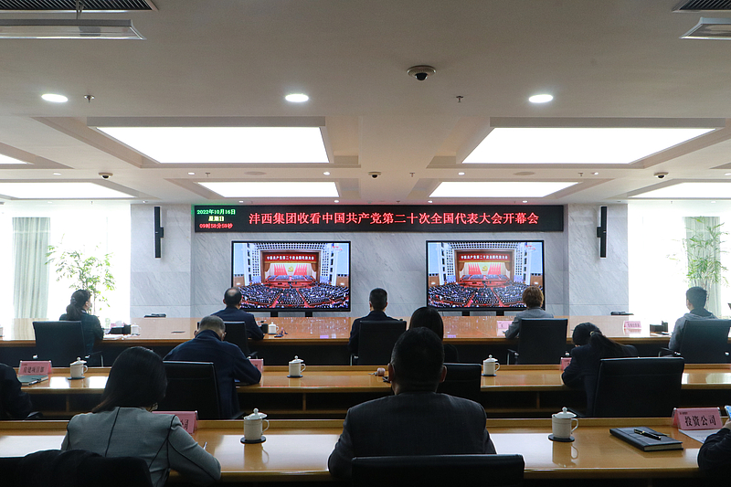 10月16日上午十時,中國共產黨第二十次全國代表大會在北京人民大會堂開幕,灃西集團組織干部員工收聽收看黨的二十大開幕會直播盛況,集團在家領導班子成員,各部門、各子公司主要負責人參加集中收看,其余員工通過電視、網絡等渠道收聽收看。