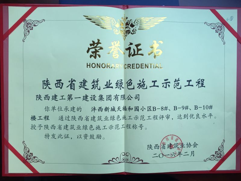 天福和園一期榮獲陜西省建筑優(yōu)質(zhì)結(jié)構(gòu)工程