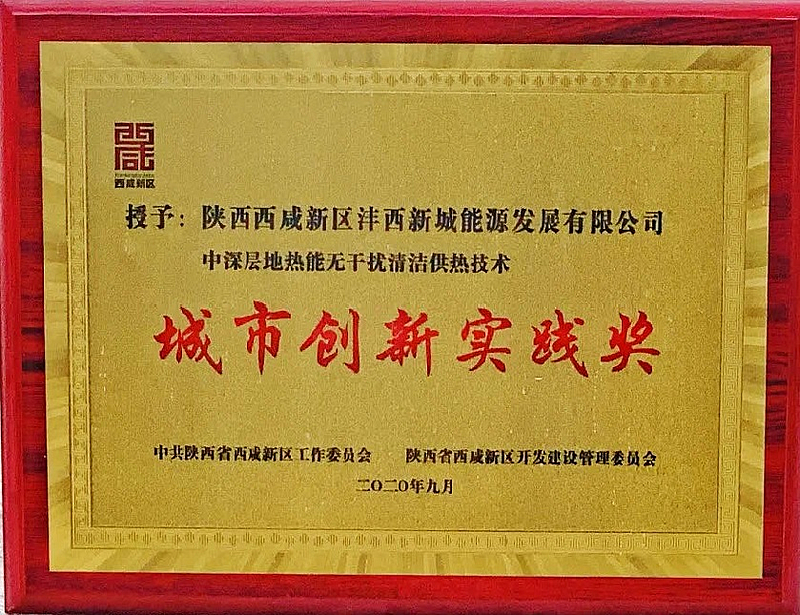 中深層地熱能無干擾清潔供熱技術榮獲西咸新區(qū)城市創(chuàng)新實踐獎