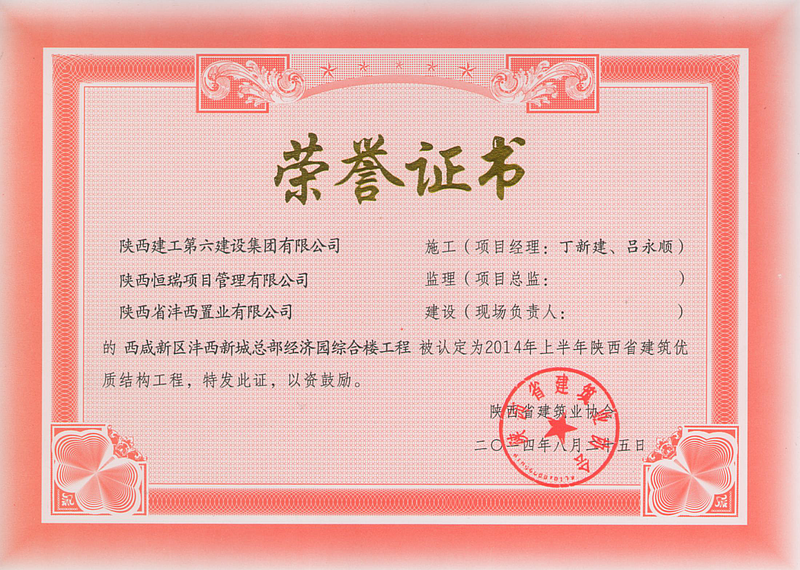 總部經(jīng)濟(jì)園綜合樓項(xiàng)目榮獲陜西省建筑優(yōu)質(zhì)結(jié)構(gòu)工程