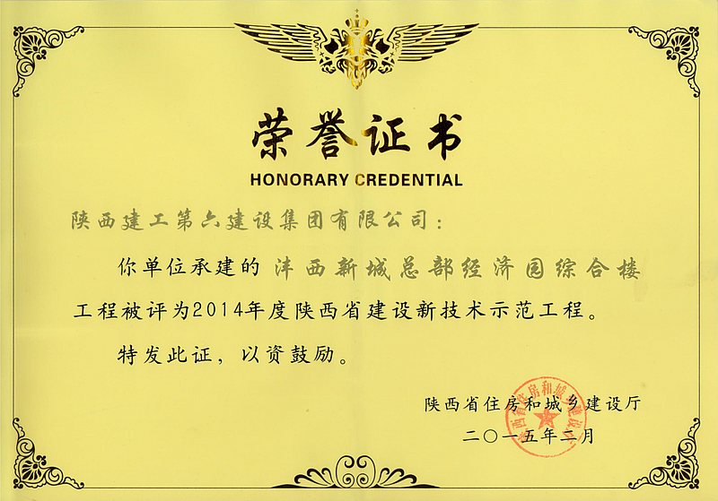 總部經(jīng)濟(jì)園綜合樓項(xiàng)目榮獲陜西省建設(shè)新技術(shù)示范工地