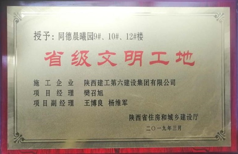 同德·晨曦園9#、10#、12#樓及地下車庫項(xiàng)目榮獲陜西省建設(shè)工程“長安杯獎(jiǎng)”(省優(yōu)質(zhì)工程)