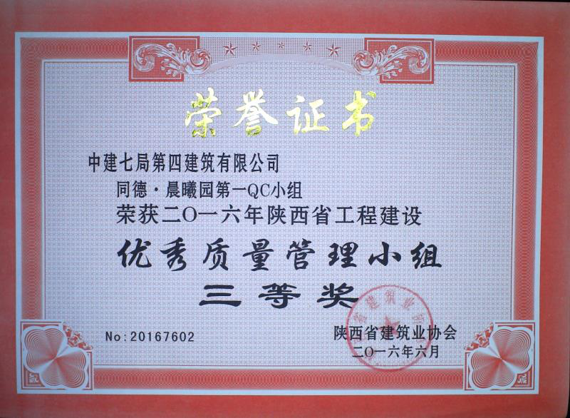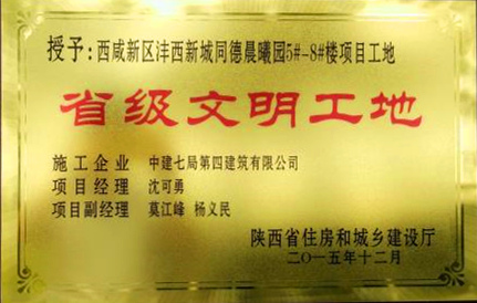 同德·晨曦園5-8號(hào)樓項(xiàng)目榮獲陜西省優(yōu)秀質(zhì)量管理
