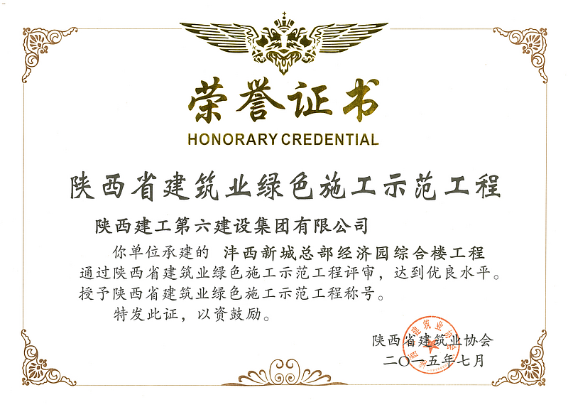 總部經(jīng)濟(jì)園綜合樓工程榮獲陜西省建筑業(yè)綠色示范工程