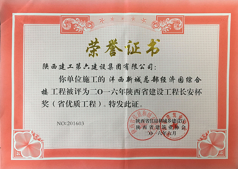 總部經(jīng)濟(jì)園綜合樓項(xiàng)目榮獲長(zhǎng)安杯獎(jiǎng)(省優(yōu)質(zhì)工程)
