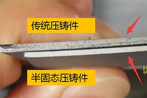 更好的致密性:以牌號AZ91D為例,原材料密度一般為1.80g/cm3 ,經(jīng)過熔化壓鑄成型后,半固態(tài)壓鑄工件密度能保證在1.79g/cm3 以上,基本沒沙孔,而傳統(tǒng)壓鑄只有1.70g/cm3左右。
