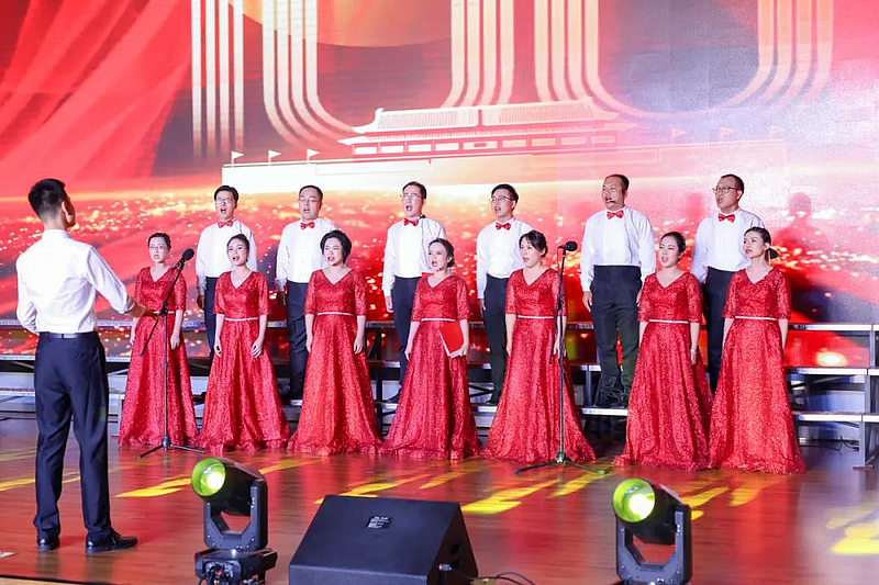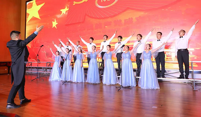 一首紅歌就是一面旗幟。“你卷走黑夜迎來晨曦,火紅的心把我們集合在一起,救國救民是你喊出的真理,中國的明天放在了我們心里……”《迎風飄揚的旗》《紅旗飄飄》《不忘初心》《陽光路上》等用奔騰奮發(fā)的曲調(diào),展現(xiàn)在中國共產(chǎn)黨的堅強領(lǐng)導(dǎo)下,中華民族實現(xiàn)了從站起來、富起來到強起來的偉大飛躍,表達出灃西人堅定不移跟黨走,拼搏奮進新時代的使命。