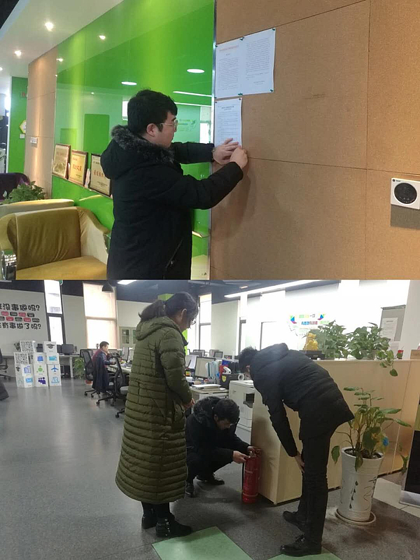 會后,公司各部門立即針對辦公環(huán)境、樓宇設(shè)施、消防設(shè)備等方面展開安全生產(chǎn)大排查工作。
