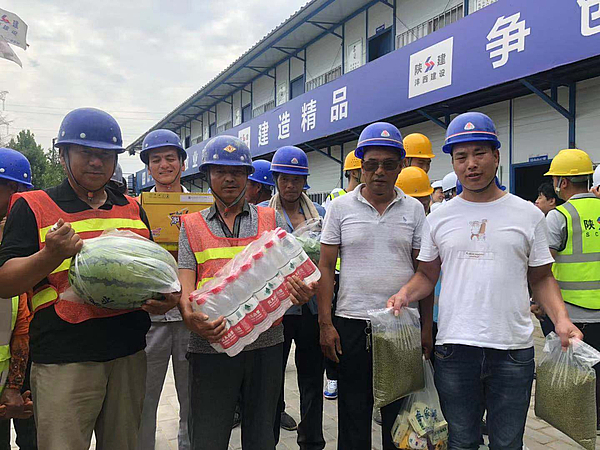 為進一步加強夏季高溫期間安全生產工作,有效預防和減少高溫中暑事件,激發員工愛崗敬業的激情,7月26上午,集團公司副總經理張桂林前往灃河污水廠項目現場看望慰問奮斗在一線的員工,為他們送去綠豆、西瓜、藥品等防暑降溫物品。
