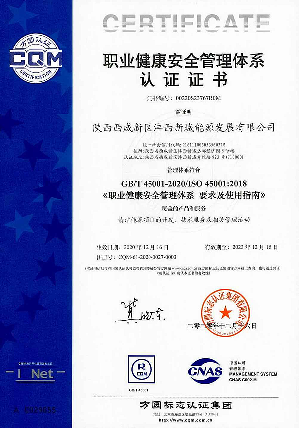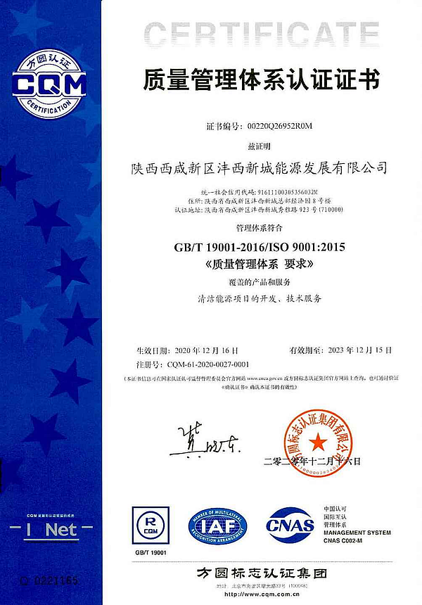 近日,灃西新城能源公司順利通過方圓標(biāo)志認(rèn)證集團有限公司審核專家組QES(質(zhì)量、環(huán)境和職業(yè)健康安全管理體系)初次認(rèn)證審核,并于12月16日順利獲得了QES管理體系認(rèn)證證書,為推進(jìn)公司規(guī)范化建設(shè),提升管理水平,增強企業(yè)競爭力,奠定了良好基礎(chǔ)。