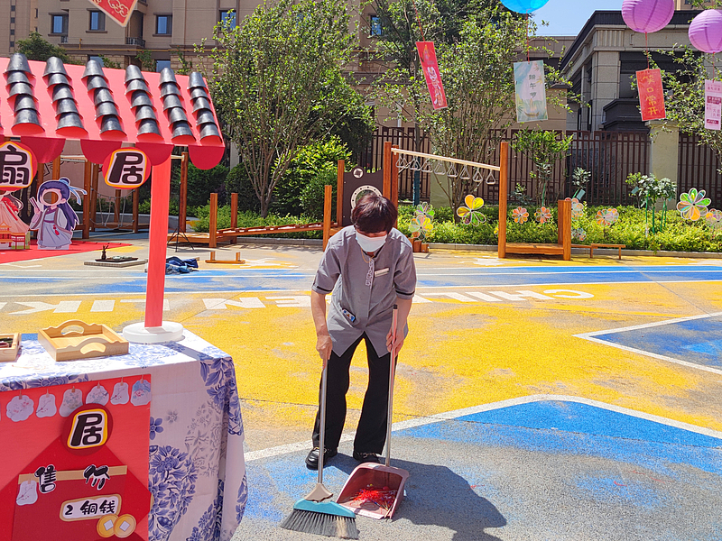 繽紛夏日,精彩六一。灃西第七幼兒園的“古風游園會”也開始了,孩子們都穿著漢服在“集市”里“購物”,有粽子、團扇、糖葫蘆等等,物業校區項目還貼心地為孩子們準備了可愛的遮陽帽,遠遠望去也是一道可愛的風景線。