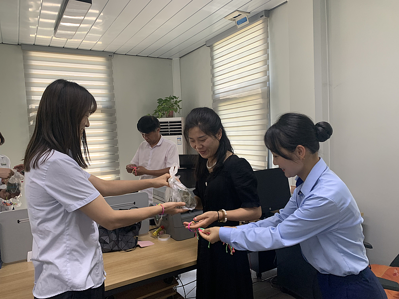 在灃西物業(yè)釣魚臺新村項目中心和創(chuàng)新港片區(qū)項目中心,項目工作人員把香包、粽子、花繩送到了園區(qū)業(yè)主和秦創(chuàng)原灃西建設指揮部、綜合執(zhí)法大隊、大王街道等部門的工作人員手中,為他們送去了安康和祝福,營造了滿滿的儀式感。