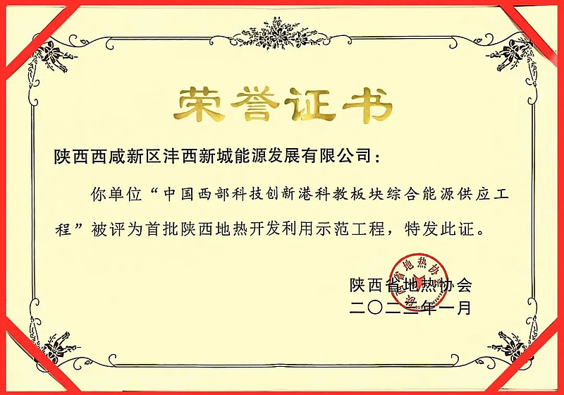 榮獲“首批陜西地?zé)衢_(kāi)發(fā)利用示范工程”
