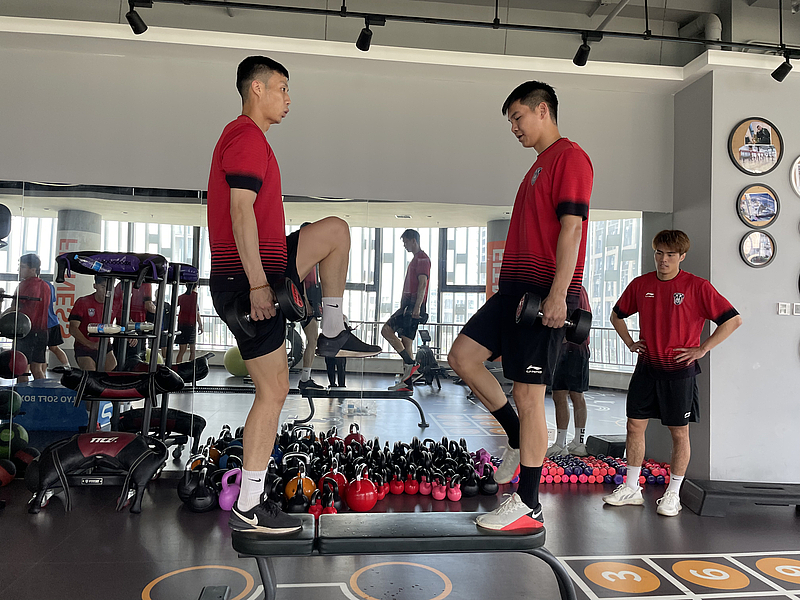 8月29日,在云谷二期健身房中,陜西長安聯合足球俱樂部的球員們正在緊鑼密鼓訓練備戰,準備迎接即將到來的2023中冠聯賽總決賽。