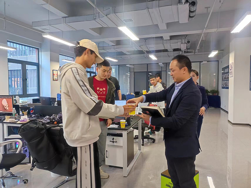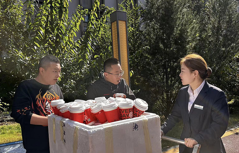 園區(qū)物業(yè)人員將分裝好的熱茶,送至企業(yè)員工手中,與企業(yè)溝通近期經營情況,詢問企業(yè)遇到的問題與困難,將企業(yè)反饋的意見和建議一一登記,及時回復并解決。