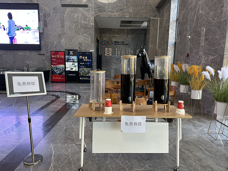 “我們還在園區(qū)配置了免費熱茶點,使大家在早晨踏入園區(qū)時能喝上一口熱茶暖暖身子,更好地投入工作。”工作人員說道。