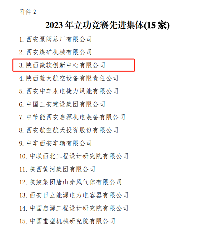 近日,西安市機(jī)械冶金建材工會(huì)關(guān)于表彰 2023 年“十佳機(jī)械工匠人才”立功競(jìng)賽先進(jìn)集體、先進(jìn)班組、先進(jìn)個(gè)人名單正式揭曉,經(jīng)基層推薦、初審初評(píng)、社會(huì)公示和綜合評(píng)定,陜西微軟創(chuàng)新中心有限公司(以下簡(jiǎn)稱“陜西MIC”)工會(huì)在本次表彰中喜獲立功競(jìng)賽先進(jìn)集體獎(jiǎng)。