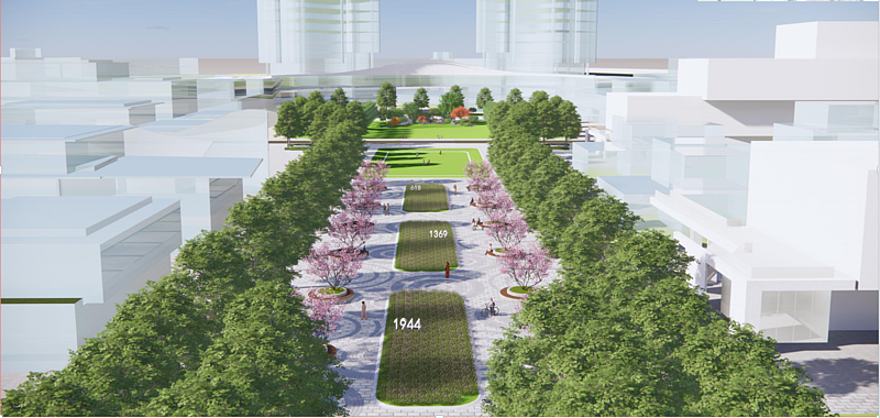 園區內以簡潔的復層種植為主,堅持生態性,注重特殊性,考慮季相性,打造四季怡人的生態環境。采用區域喬木陣列式種植,形成規則種植形式;局部運用開花地被,形成簡潔飄逸的商業景觀空間;部分區域栽植草花地被,點綴銀杏,增加季相變化效果,形成視覺焦點。