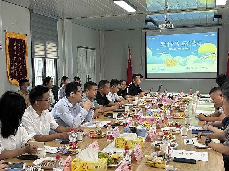 中秋佳節將至,為進一步打造親商、重商的營商環境,加強企業之間、政企之間的合作交流, 9月14日,由西咸新區灃西新城人工智能產業園發展中心、西咸新區灃西新城裝備制造產業園發展中心、西咸新區絲路科元建設有限公司聯合舉辦的“盈月秋話,惠企營商”灃西新城入區企業中秋茶話會活動,在秦創原灃西建設指揮部舉行。
