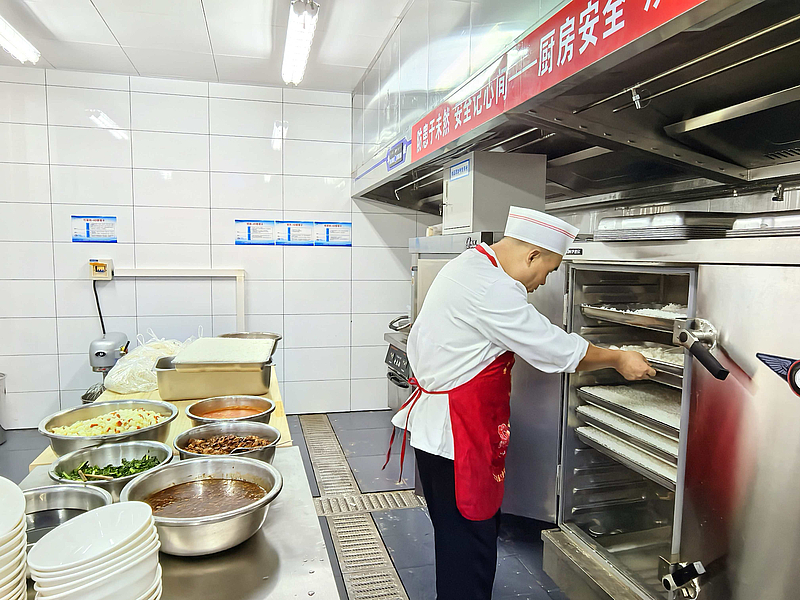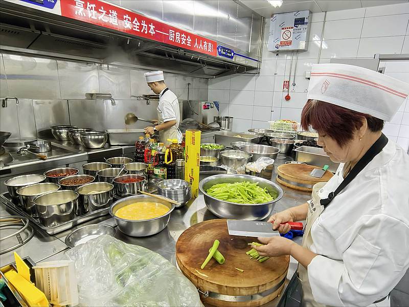 走進(jìn)餐廳,映入眼簾的是明亮干凈的就餐環(huán)境,桌椅擺放整齊,用餐氛圍舒適,后廚整潔有序,專業(yè)廚師團(tuán)隊從食材挑選到烹飪出品,每道工序都嚴(yán)格把控,讓大家吃得更安心。
