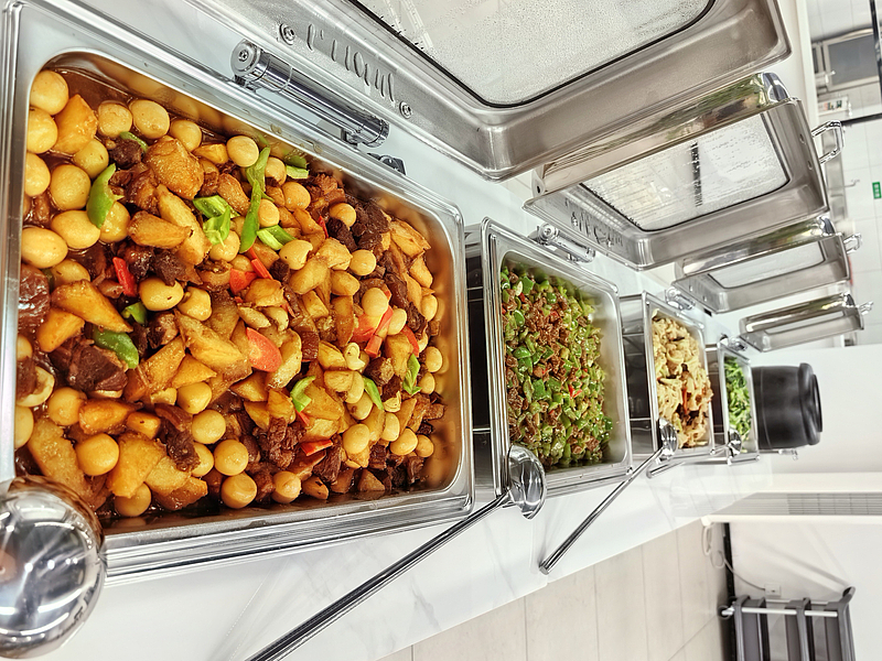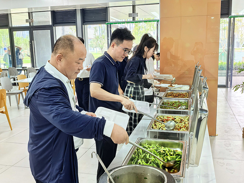 菜品上融合了南北風(fēng)味,既有北方的面食、燉菜,也有南方的小炒、湯品,能滿足不同員工的口味偏好。試營業(yè)當(dāng)天,首批用餐的園區(qū)員工對餐廳的菜品口感、分量及就餐環(huán)境都給出了一致好評,大家紛紛表示 “以后在園區(qū)就能吃好,既方便又健康”。