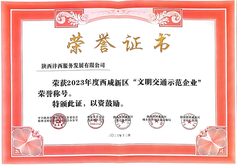近日,西咸新區黨工委文明辦、市公安局西咸新區分局、西咸新區教育體育局、西咸新區城市管理和交通運輸局、西咸新區基層工作部等部門在全區聯合開展“文明交通示范集體和先進個人”創建評選活動。經評審,灃西集團服務公司榮獲2023年度西咸新區“文明交通示范企業”榮譽稱號。