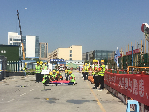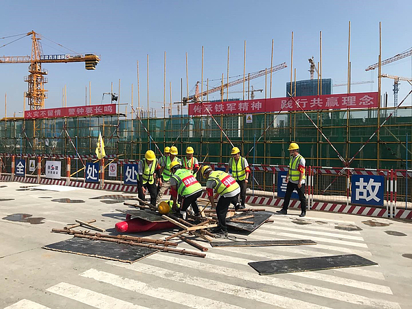 本次演練針對高支模坍塌事故和有限空間作業(yè)事故開展應(yīng)急救援,現(xiàn)場分別模擬高支模架體突然發(fā)生坍塌,兩名作業(yè)人員被鋼管、模板埋壓的場景和由于作業(yè)人員違章操作,在未經(jīng)審批的情況下,下井作業(yè)突然暈倒的場景,事故發(fā)生后,現(xiàn)場立即啟動應(yīng)急預(yù)案,在應(yīng)急指揮部統(tǒng)一調(diào)度下,各應(yīng)急救援組各司其職,分頭行動開展應(yīng)急救援工作。經(jīng)過緊張救援,遇險人員被救出,并送往醫(yī)院進一步治療。現(xiàn)場救援人員隨即全部撤離,各項演練任務(wù)順利完成。