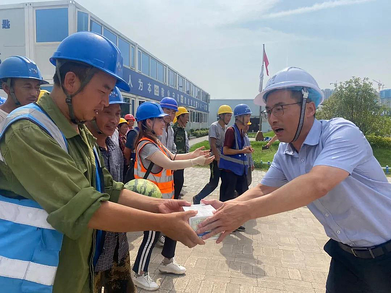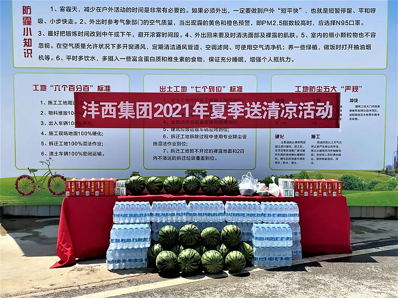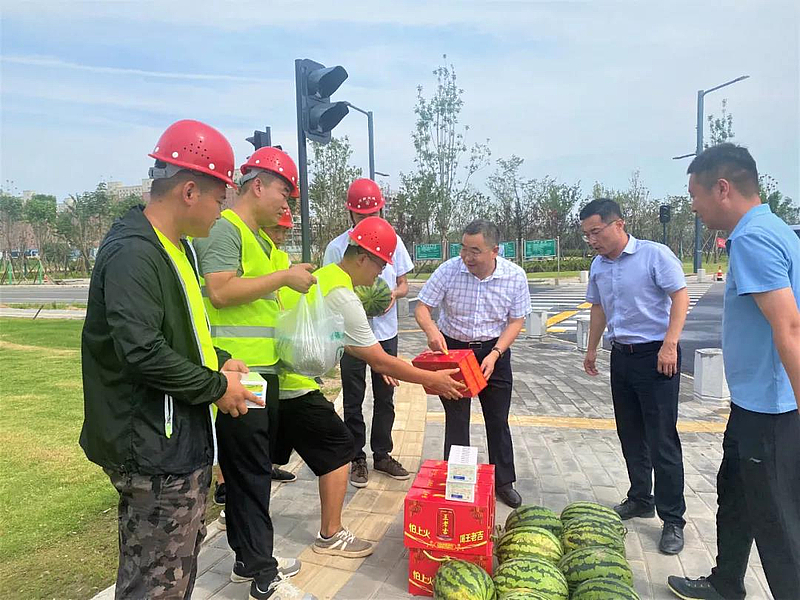 7月6日至7日,灃西集團(tuán)開展夏季慰問一線“送清涼”活動,集團(tuán)領(lǐng)導(dǎo)班子成員分別帶隊深入在建項目,向戰(zhàn)高溫、斗酷暑的一線員工和勞務(wù)工人送去清涼解暑的飲品、藥品、水果等防暑降溫物資,表達(dá)集團(tuán)對一線工作者的崇高敬意和親切問候。