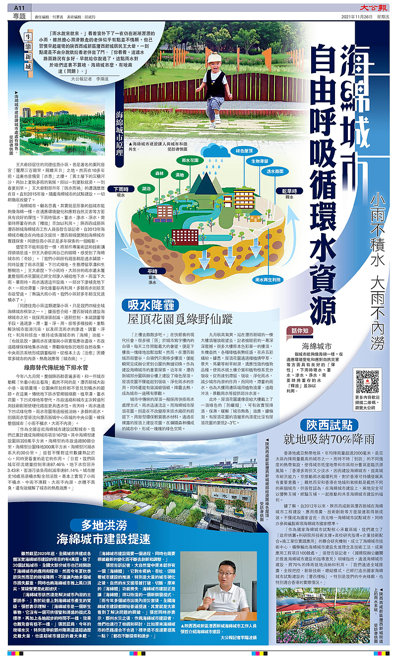 “作為國家海綿城市試點核心承載區(qū)域,我們建立了‘政府統(tǒng)籌+科研院所技術支撐+高校研究指導+企業(yè)技術配合+施工單位實踐應用’的聯(lián)合研究機制,成立了海綿城市技術中心,積極輸出海綿城市建設先進理念及技術工法,成果應用工程項目100余處。”張哲告訴記者,《國務院辦公廳關于推進海綿城市建設的指導意見》明確指出,通過海綿城市建設,將70%的降雨就地消納和利用。“我們通過全域推廣,全程把控,創(chuàng)新技術,總結(jié)模式,已經(jīng)打造出國家海綿城市試點建設的‘灃西樣板’。特別是我們的中心綠廊,也特別適合香港的實際情況。”