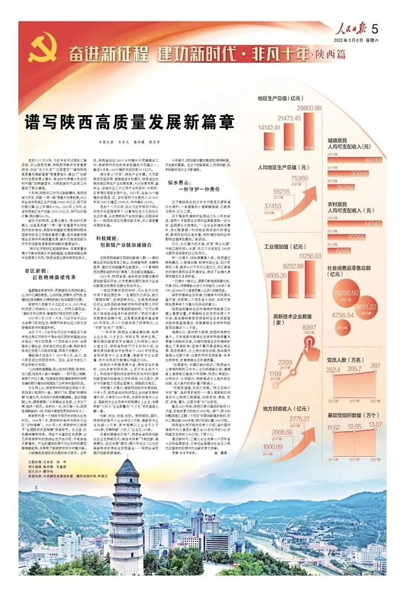 8月6日,人民日報(bào)刊發(fā)主題報(bào)道《奮進(jìn)新征程建功新時(shí)代·非凡十年》。聚焦陜西,緊抓西部大開發(fā)、共建“一帶一路”等重大發(fā)展機(jī)遇,在高質(zhì)量發(fā)展中不斷實(shí)現(xiàn)高水平追趕超越。2021年,陜西省委、省政府啟動(dòng)建設(shè)秦創(chuàng)原創(chuàng)新驅(qū)動(dòng)平臺,力求把秦創(chuàng)原打造成為全省創(chuàng)新驅(qū)動(dòng)發(fā)展的總源頭和總平臺。(人民日報(bào)記者王樂文龔仕建張丹華)原標(biāo)題:《人民日報(bào)聚焦!