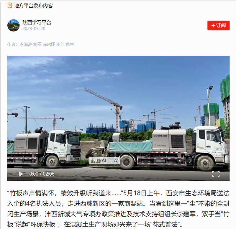 “竹板聲聲情滿懷,績效升級聽我道來……低碳目標(biāo)更清晰,常抓環(huán)保不懈力;培訓(xùn)幫扶要成效,升級目標(biāo)盯得牢……”5月18日上午,西安市生態(tài)環(huán)境局送法入企的4名執(zhí)法人員,走進(jìn)西咸新區(qū)的一家商砼站。當(dāng)看到這里一“塵”不染的全封閉生產(chǎn)場景,灃西新城大氣專項(xiàng)辦政策推進(jìn)及技術(shù)支持組組長李建軍,雙手當(dāng)“竹板”說起“環(huán)保快板”,在混凝土生產(chǎn)現(xiàn)場即興來了一場“...