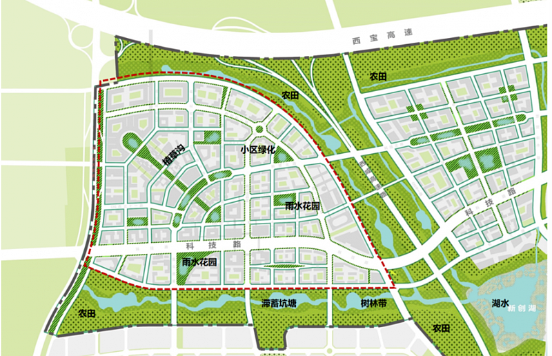 A區地處中國西部科創走廊核心區和大西安絲路經濟軸,緊鄰西安交大創新港、西工大翱翔小鎮,地理位置優越。項目占地面積2266畝,總建筑面積約281萬平方米,總投資200億元,劃分為14個開發單元,由灃西集團主導開發建設,灃西集團下屬二級子公司科元公司承擔主要建設職能。
